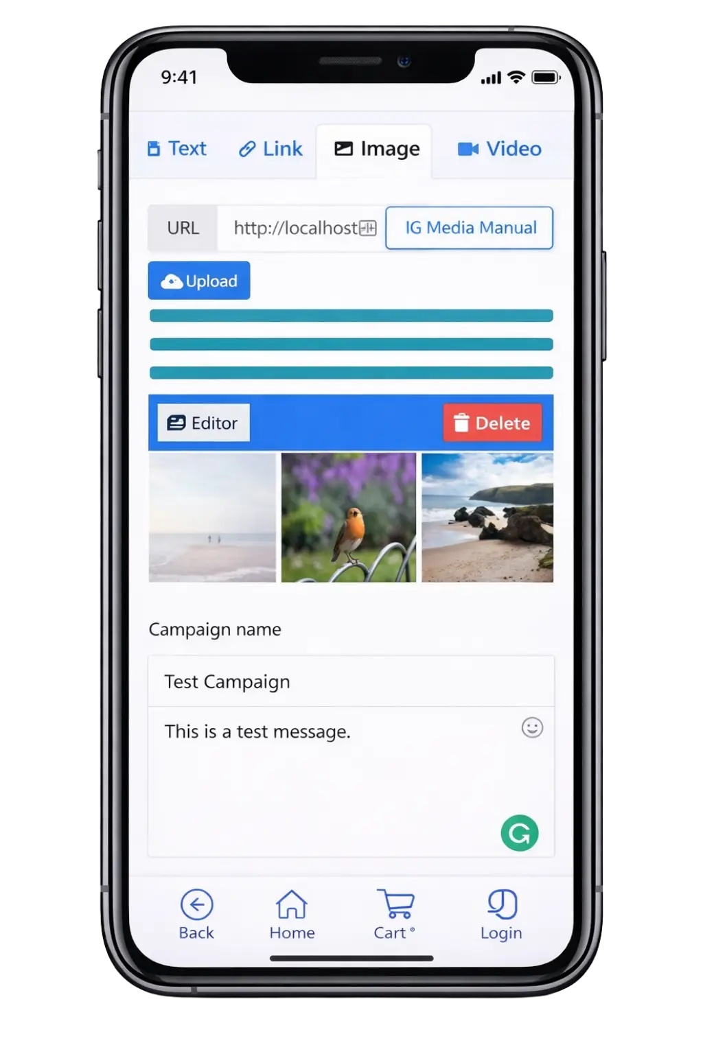 Crea publicaciones con texto, imágenes o video. Publícalas al instante o prográmalas para mantener tu cuenta activa y visible.