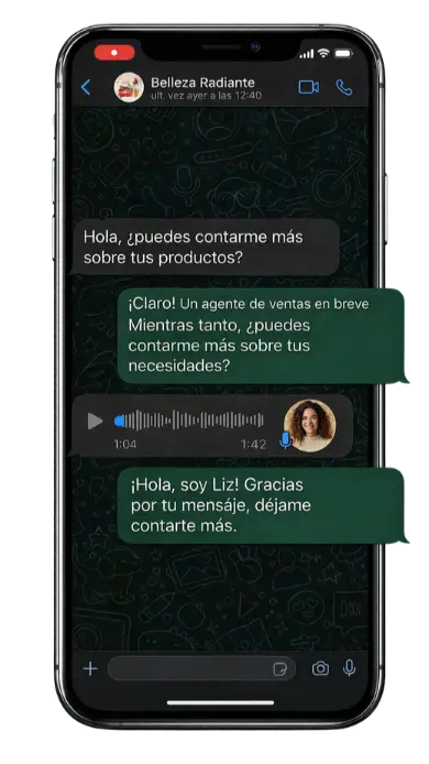 Conecta con clientes altamente interesados, construye relaciones duraderas y cierra ventas de manera eficiente. Todo esto a través de conversaciones personalizadas, rápidas y automatizadas que optimizan tu proceso de ventas.